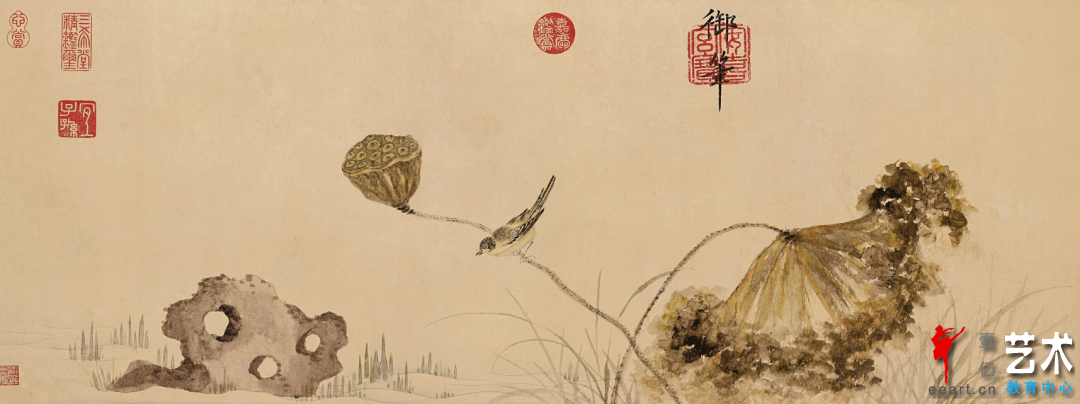 而年轻、无拘无束的生活态度,加上皇室赋予的文化素养,使他的绘画艺术虽然师法宫廷职业画家,但也呈现出一定的写意倾向。既有宫廷画风的富贵工稳,也有文人意趣的野逸审美。