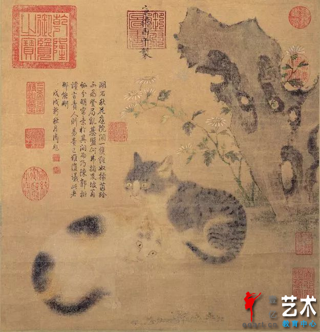 明 朱瞻基《花下狸奴图》,台北故宫博物院藏