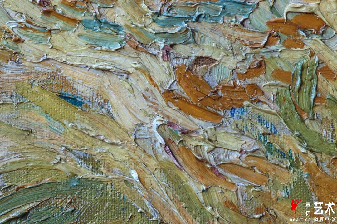 而这一片麦田随风舞动,还点缀着罂粟花和矢车菊。颇有趣味的是,一只鹧鸪正从田野中飞出来。由于这幅画视角很低,你会感觉自己就在田野旁边。梵高居住在拥挤的巴黎时,画了这片乡村麦田,仿佛是在怀念那一份闲适美好。