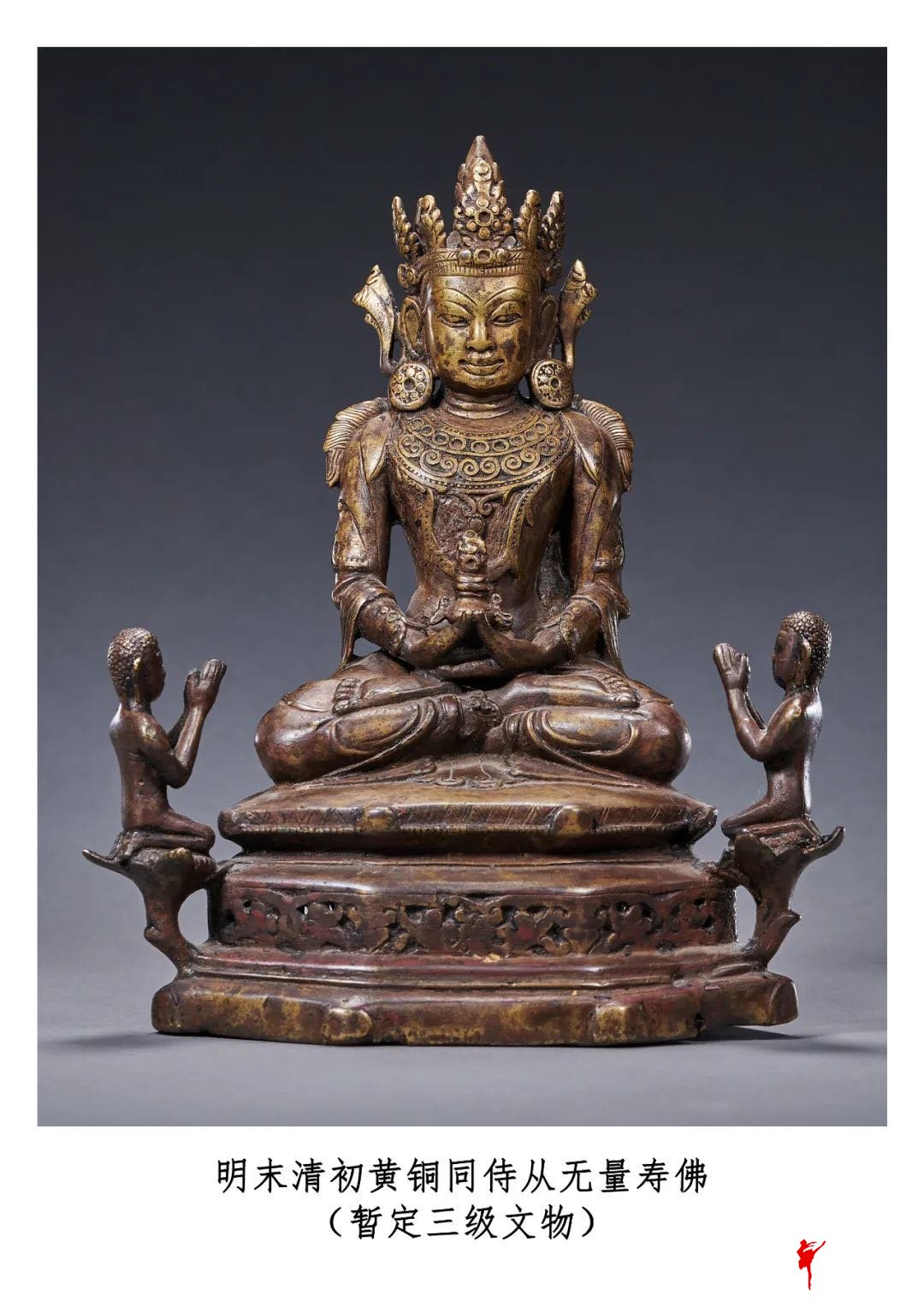 明末清初黄铜同侍从无量寿佛 暂定三级文物 罗征 摄 国家文物局供图