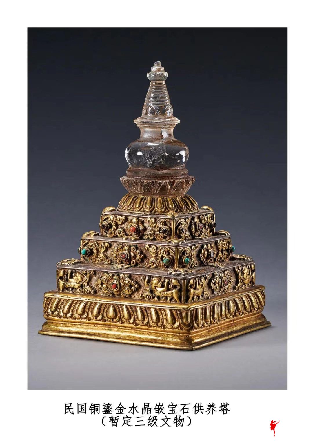 民国铜鎏金水晶嵌宝石供养塔 暂定三级文物 罗征 摄 国家文物局供图