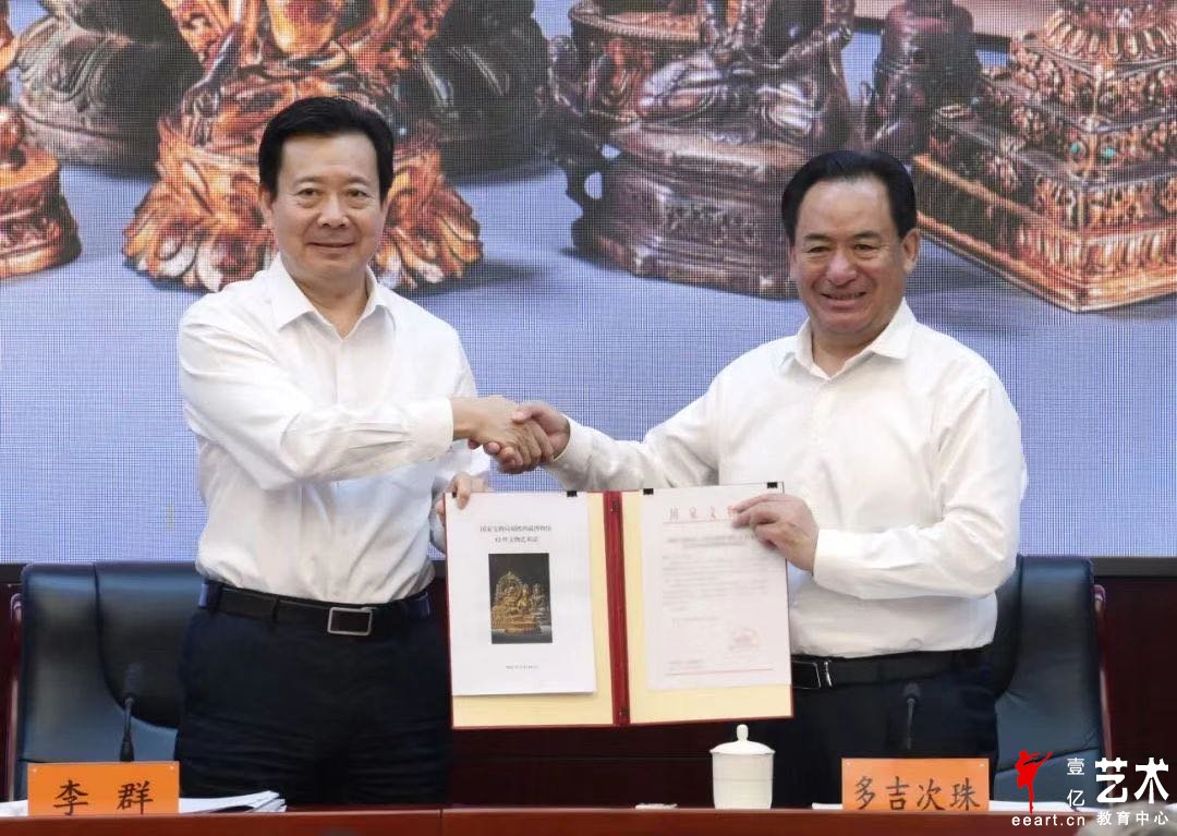 9月26日上午,全国文物援藏工作电视电话会议在京召开,文化和旅游部副部长、国家文物局局长李群与西藏自治区人民政府副主席多吉次珠交接文物划拨清册,将从美国成功追索回国的12件文物艺术品整体划拨西藏博物馆。