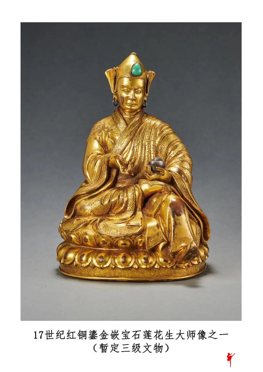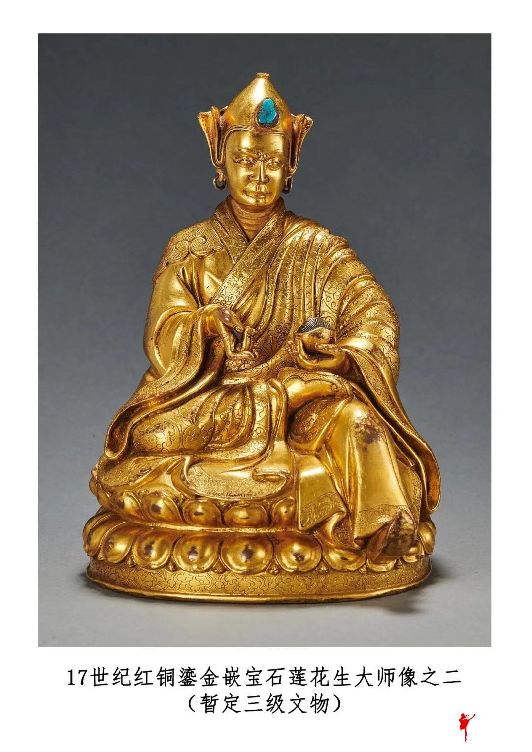 17世纪红铜鎏金嵌宝石莲花生大师像之一 暂定三级文物 罗征 摄 国家文物局供图