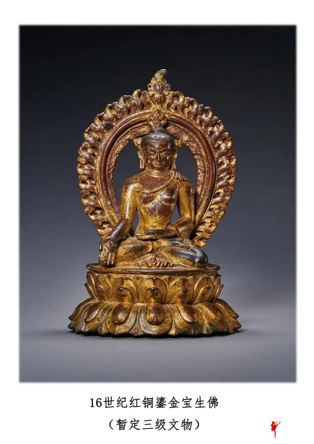 16世纪红铜鎏金宝生佛 暂定三级文物 罗征 摄 国家文物局供图